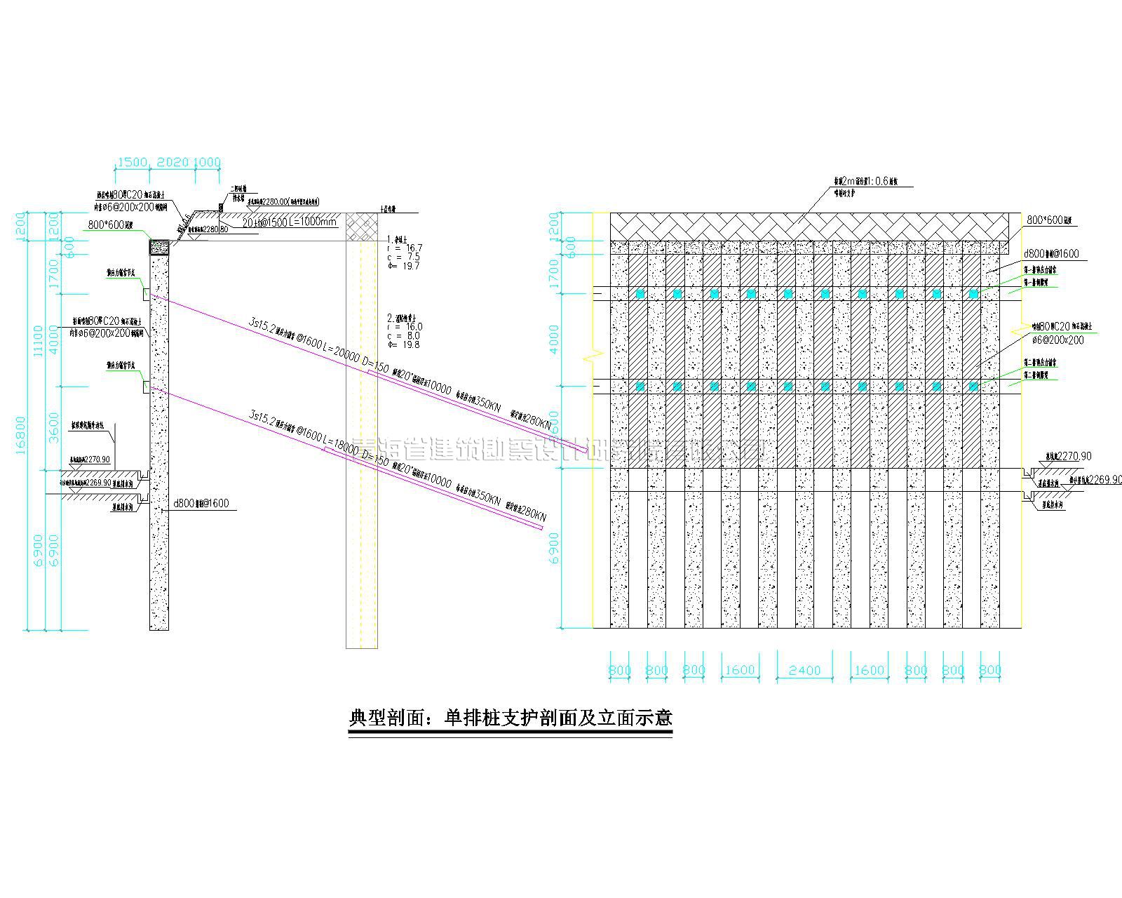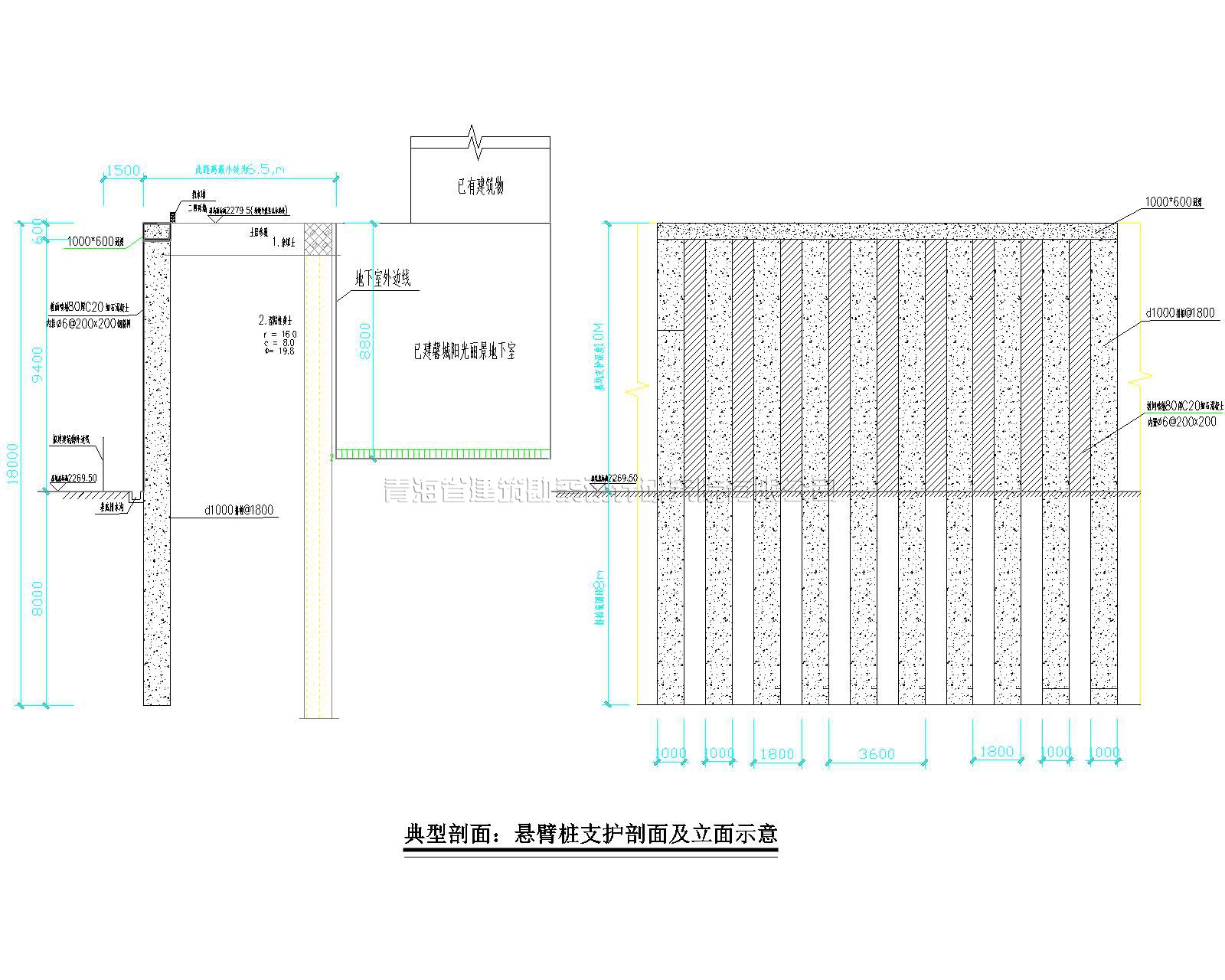 根據(jù)現(xiàn)場(chǎng)地質(zhì)條件及基坑周邊環(huán)境,依據(jù)《建筑基坑支護(hù)技術(shù)規(guī)程》(JGJ120-2012)及《濕陷性黃土地區(qū)建筑基坑工程安全技術(shù)規(guī)程》(JGJ167-2009)規(guī)定確定;基坑北側(cè)及西側(cè)基坑深度為8.6-10.0m,支護(hù)結(jié)構(gòu)安全等級(jí)為為二級(jí);其余兩側(cè)(東側(cè)及南側(cè))開挖深度在9m-12.1m之間,支護(hù)結(jié)構(gòu)安全等級(jí)為一級(jí)。此次支護(hù)基坑側(cè)壁安全等級(jí)為一級(jí)。本著安全穩(wěn)定、經(jīng)濟(jì)合理的原則,本次基坑支護(hù)設(shè)計(jì)采用排樁+預(yù)應(yīng)力及懸臂樁等綜合性,分段性的支護(hù)支護(hù)方式進(jìn)行?;又ёo(hù)設(shè)計(jì)工作于2018年完成,并于次年通過青海省建設(shè)工程勘察設(shè)計(jì)咨詢中心有限公司審查合格。