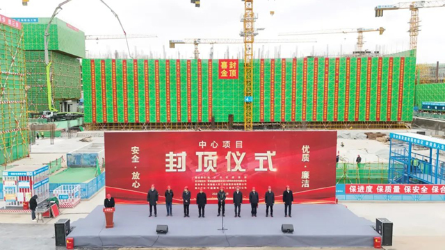 協(xié)同精筑中心樓,封頂大吉在晚秋。